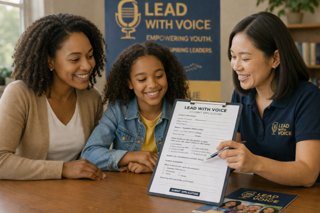 Lead with Voice welcomes applications from parents, guardians, or eligible students who are interested in the program. Please complete the form below so we can learn more about the student, their interests, and how Lead with Voice may be a good fit.